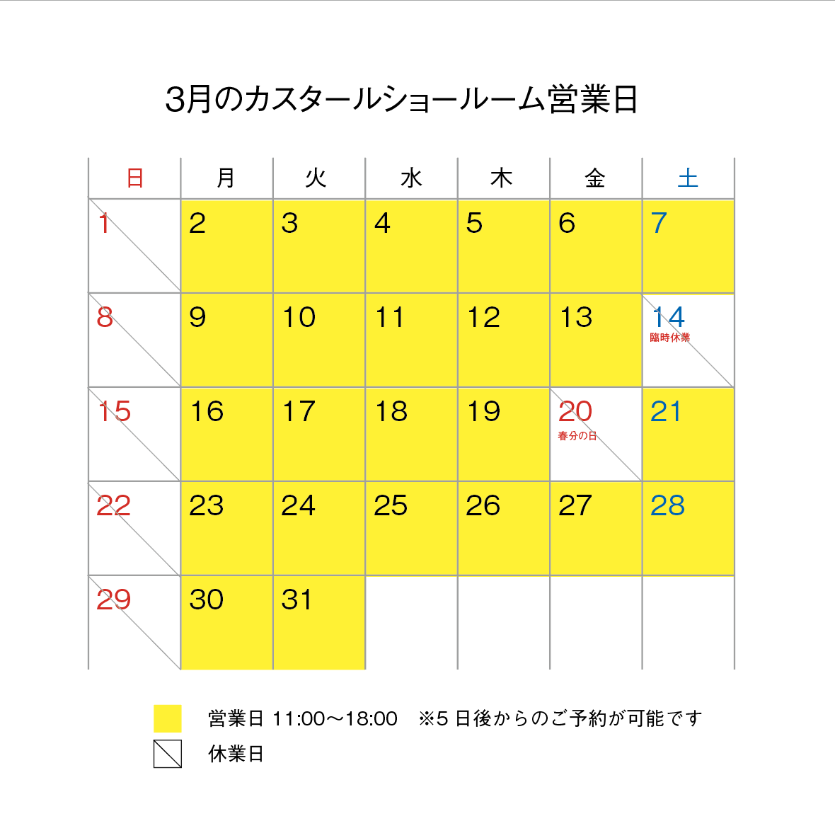 【2026年3月 ショールーム休業日】