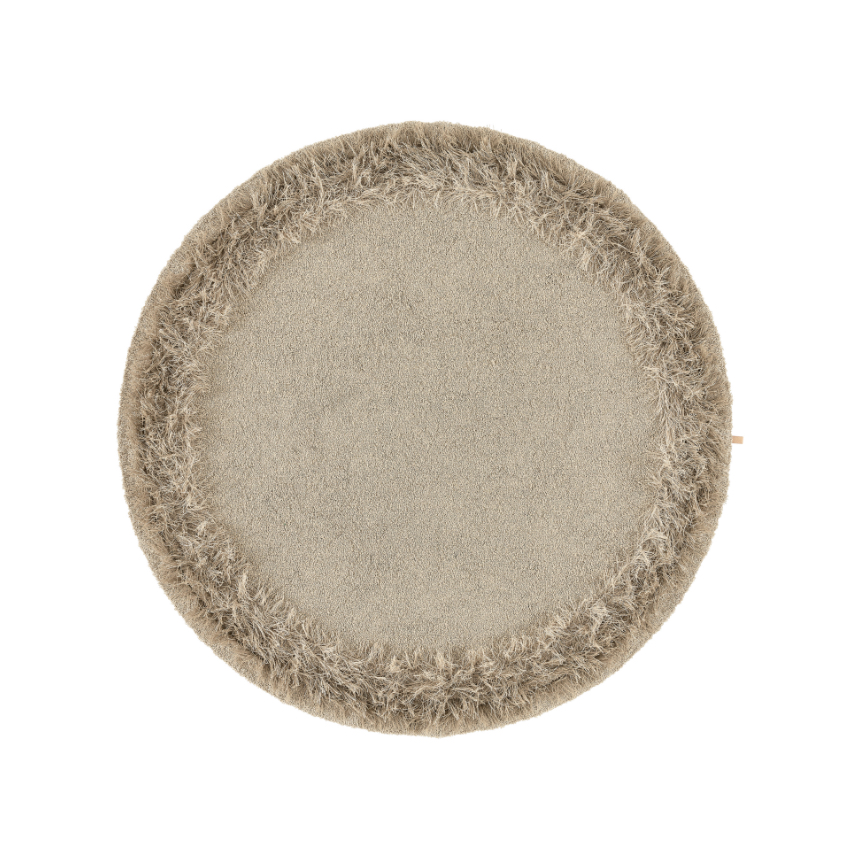 また、周囲にあしらった不ぞろいのリネンのフリンジが、羽毛のショールや1970年代トレンドのフリンジを思わせる独創的なデザインとなっています。このフリンジはFeatherの個性を表現する重要なキーであり、層状の羽毛で覆われたペンギンの腹部がアイデアソースとなっています。華やかで躍動感のある空間づくりに最適なラグです。