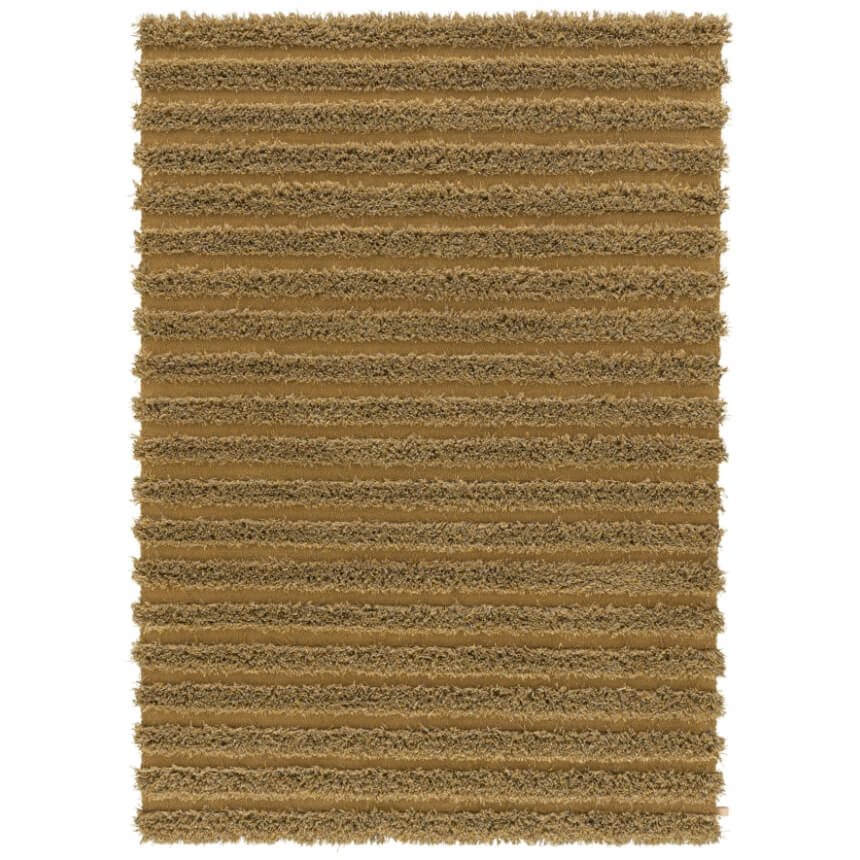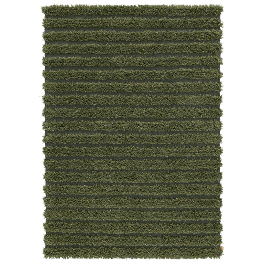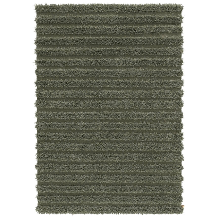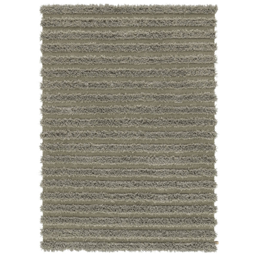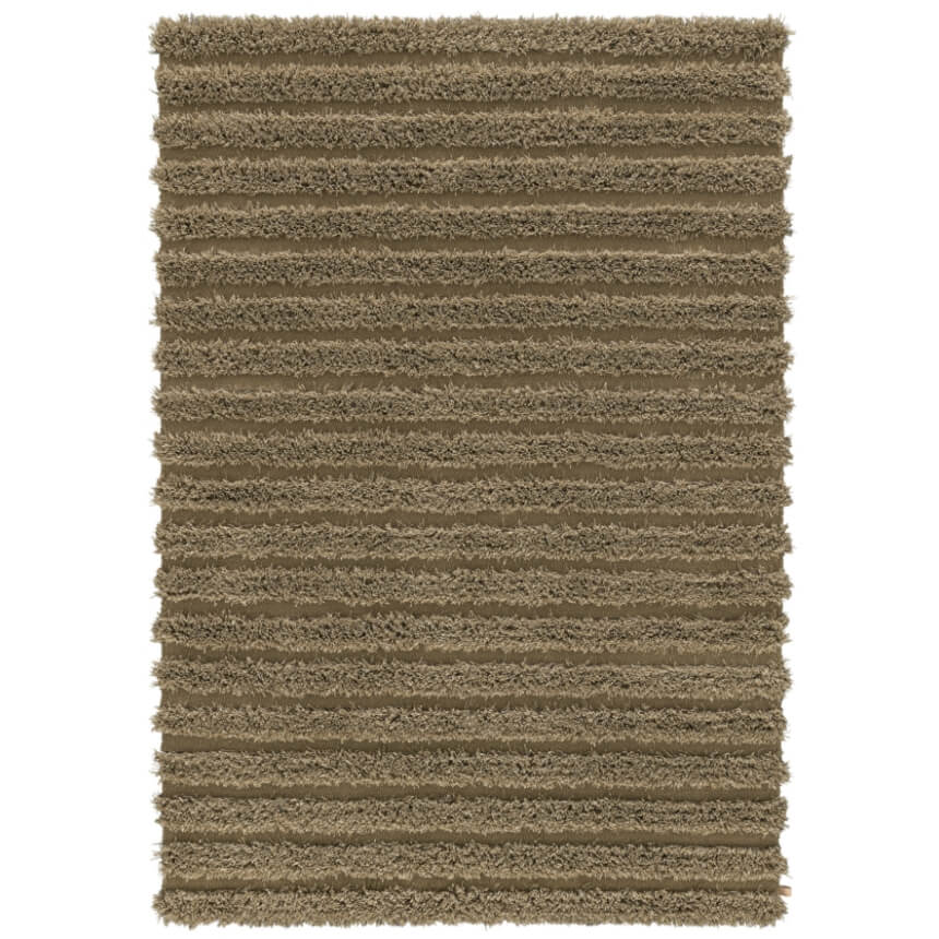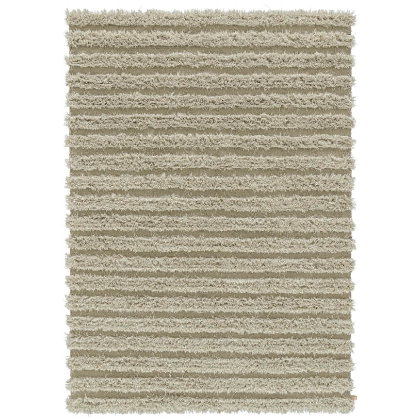 このラグは、紙を折りたたんだり、コラージュするといった実験的なデザインアプローチから生まれました。素材はウールとリネンをミックス。さまざまな高さのパイル、トーン、テクスチュアが、ストライプという規則的なパターンのなかに躍動感をもたらしています。