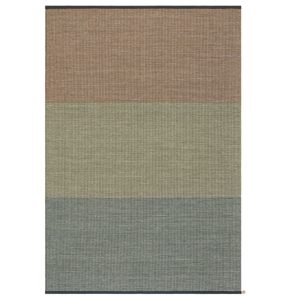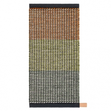 Othello(オセロ)は、ウール100%のウーブン(織り)ラグです。通常は1枚のラグに、3つのカラーを均等に配したデザインとなっていますが、よく見るとそのひとつひとつに数色の糸で細やかなパターンが描かれているのがわかります。