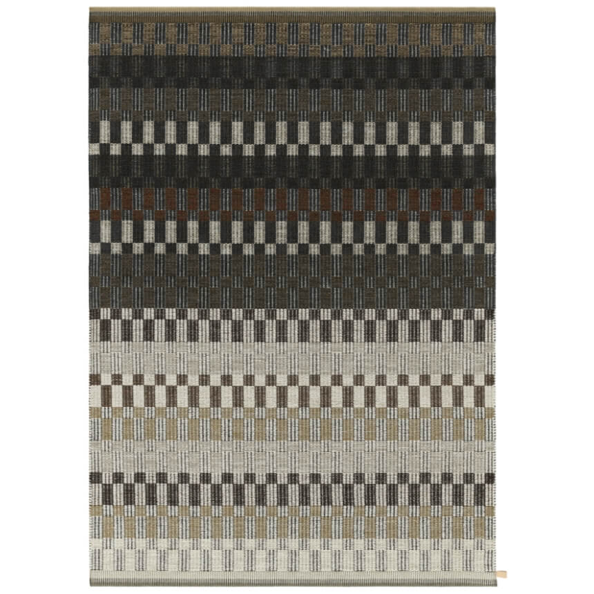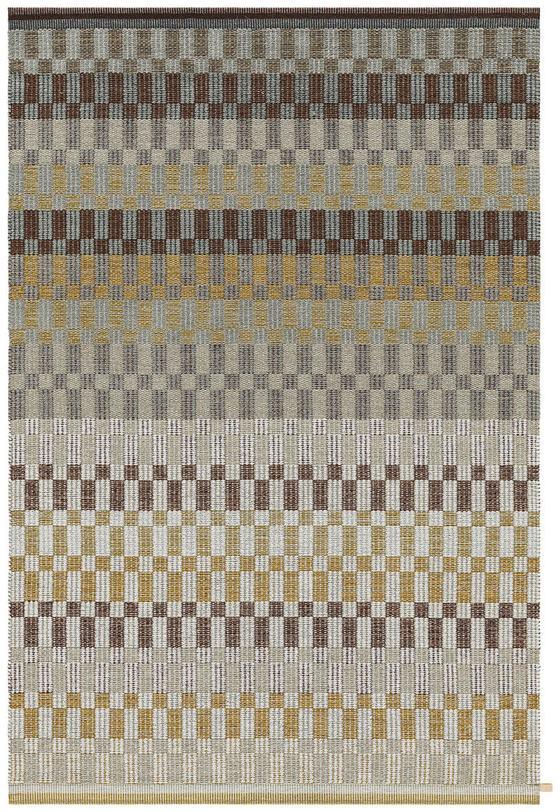 アースカラーの濃淡が美しく、両端にあしらった 3 色のストライプが独創的なPoetry(ポエトリー)。夜明けから夕暮れへと移り変わる空や散らばった石のように、さまざまな要素が重なり合うこの美しいパターンはArkad (アルカッド・1989 年発表)がベースとなっています。